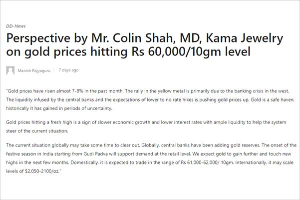 Perspective by Mr. Colin Shah, MD, Kama Jewelry on gold prices hitting Rs 60,000/10gm level
