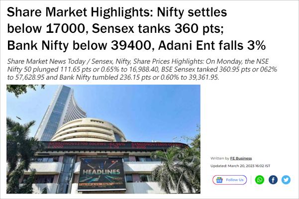 Share Market Highlights: Nifty settles below 17000, Sensex tanks 360 pts; Bank Nifty below 39400, Adani Ent falls 3%