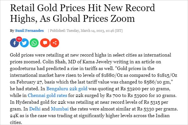 Retail Gold Prices Hit New Record Highs, As Global Prices Zoom