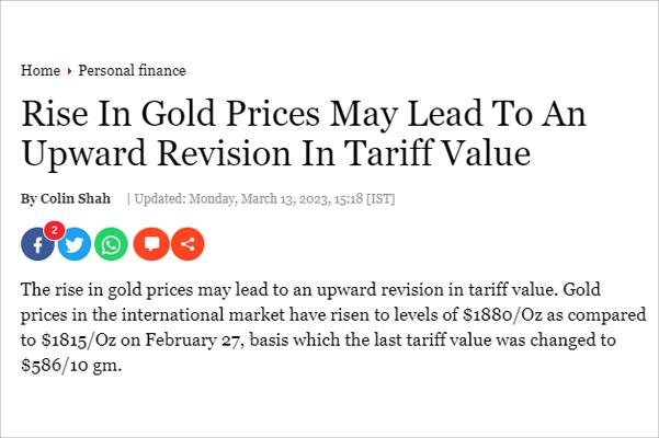 Rise In Gold Prices May Lead To An Upward Revision In Tariff Value
