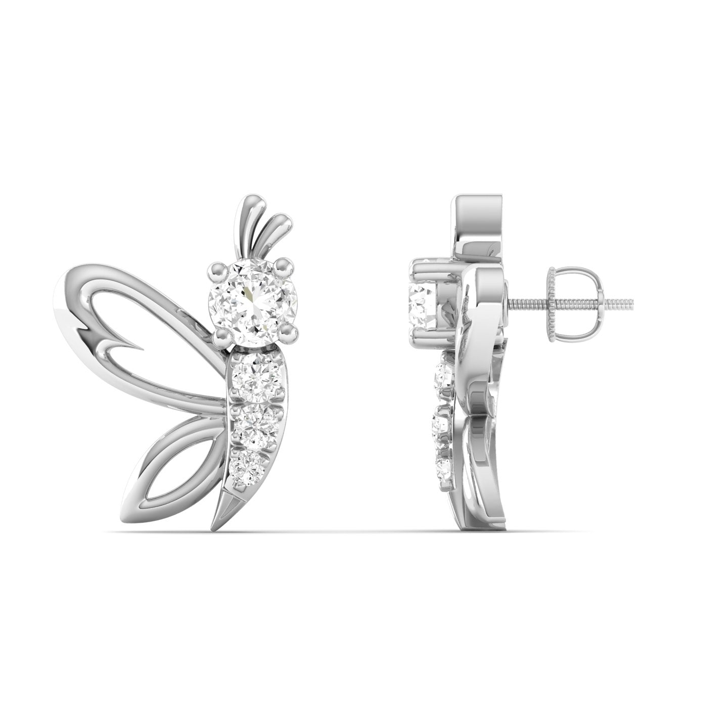 • 0.35Ct Round Cut Lab Grown Diamond Women's Lucky Tiny Flying Butterfly Earrings in 9k Solid (Rose / White / Yellow/) Gold .
