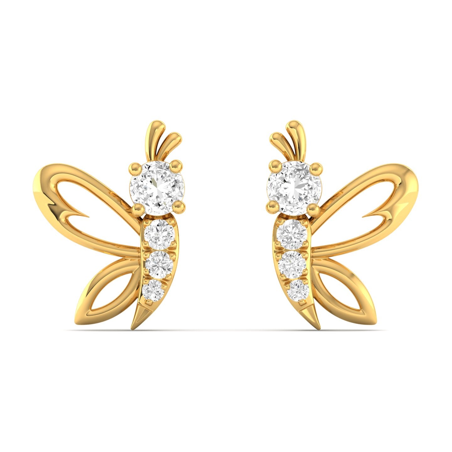Lab Grown Diamond Butterfly Stud Earrings 9k Solid Gold