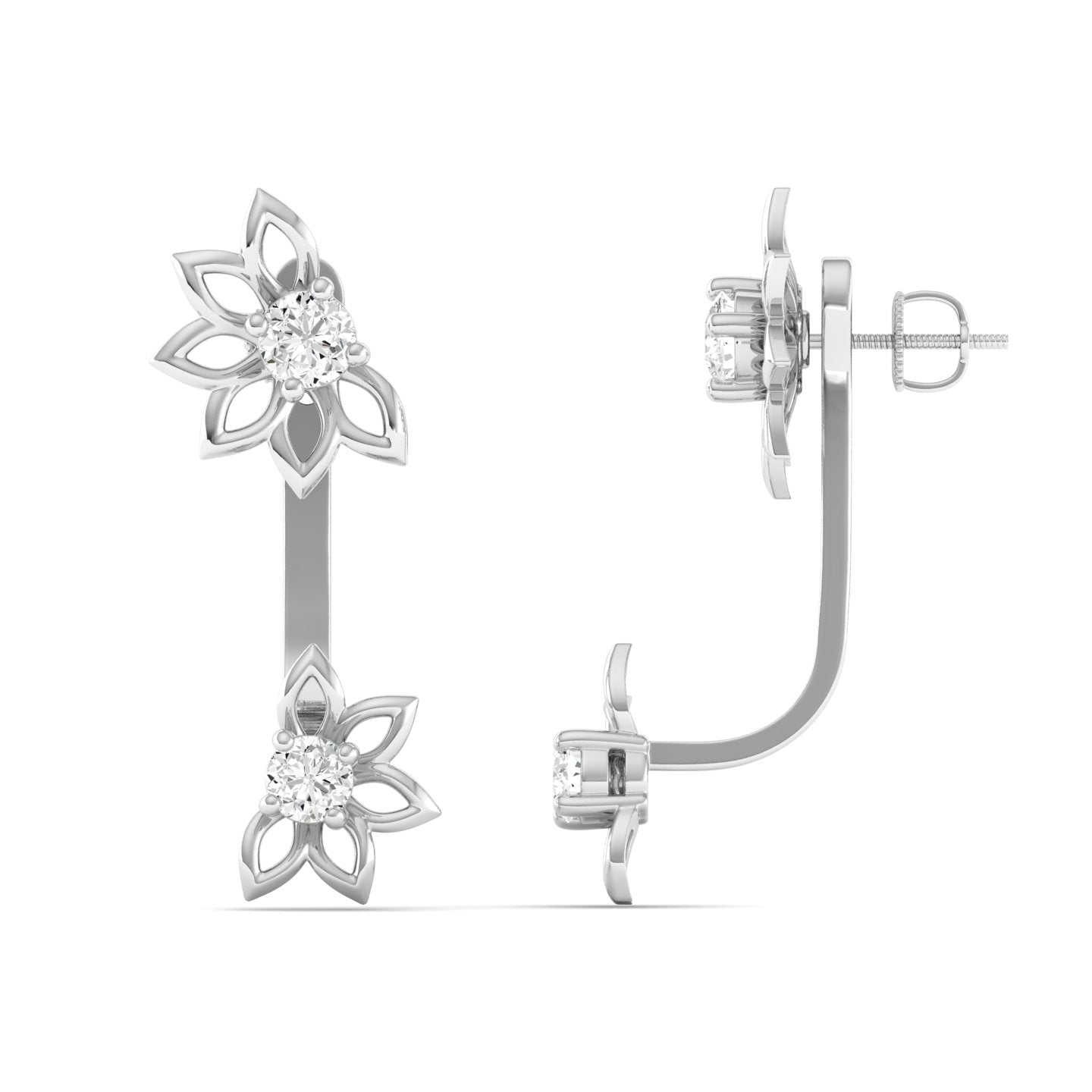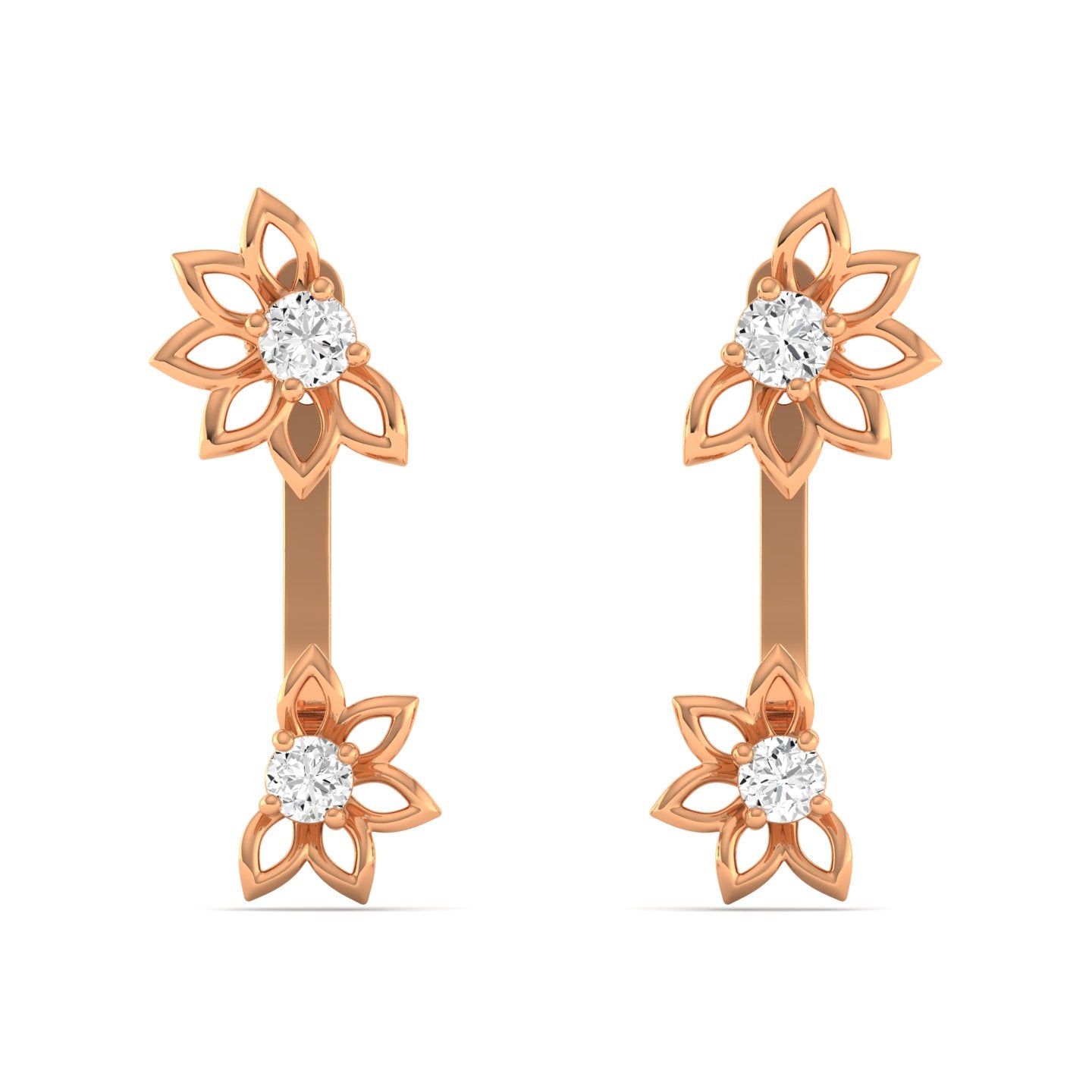 • 0.33Ct Round Cut Lab Grown Diamond Women's Lucky Half Flower Stud Earrings in 9k Solid (Rose / White / Yellow/) Gold .