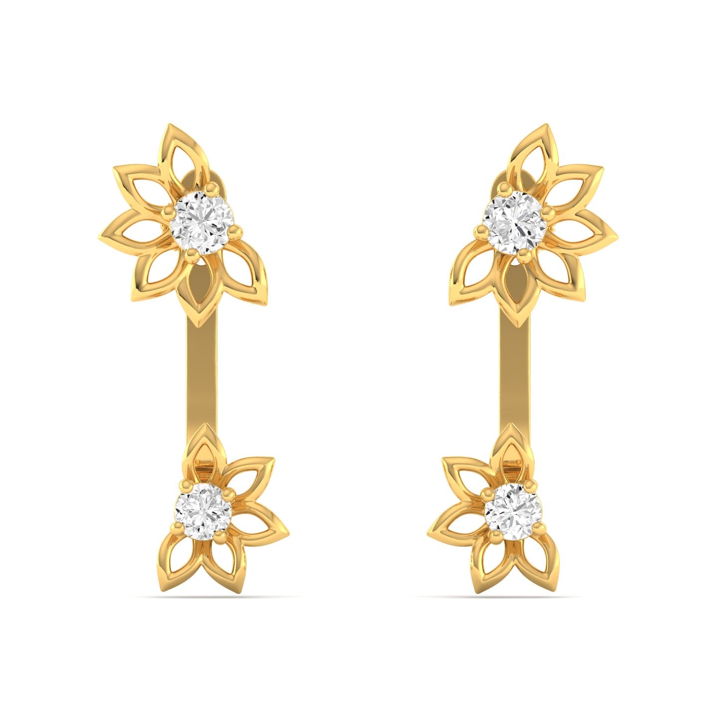 Lab Grown Diamond Floral Stud Earrings 9k Solid Gold