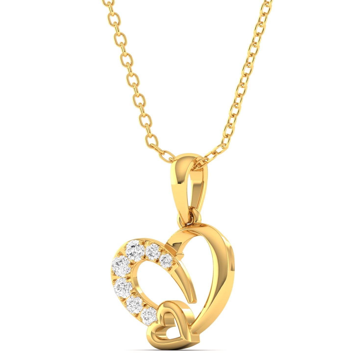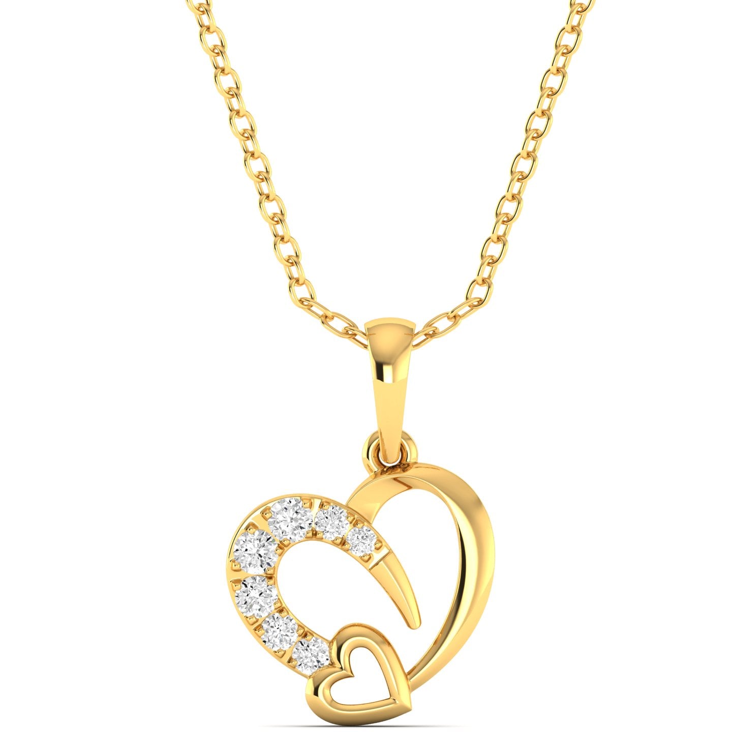 • 0.17Ct Round Cut lab Grown Diamond Wonen’s Lucky Tiny Double Heart Pendant in 9k Solid (Rose / White / Yellow/) Gold .